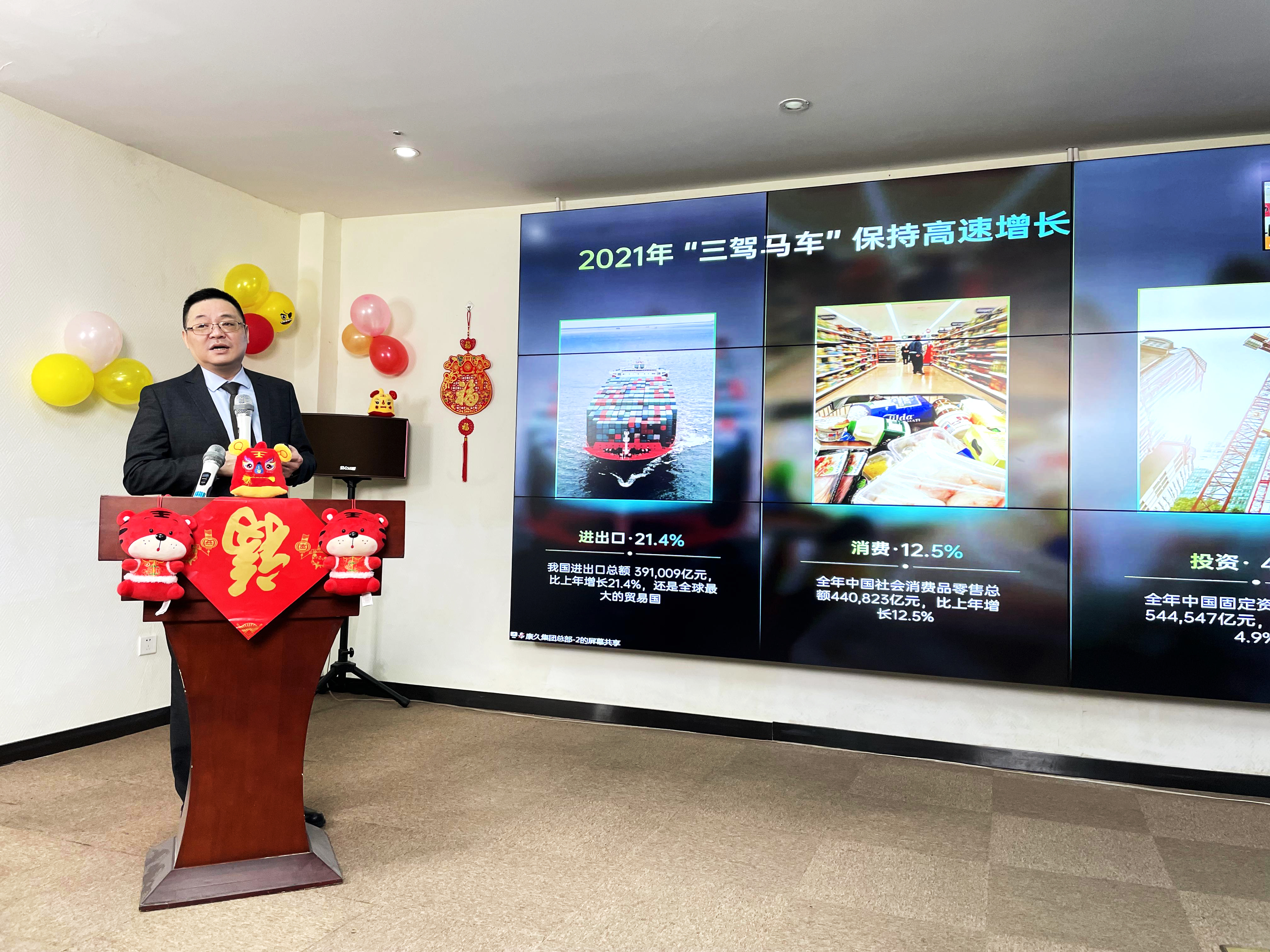 康久集團(tuán)董事長耿海波發(fā)表了以“贏戰(zhàn)”為主題的講話。耿董事長首先感謝了康久全體員工長期的辛勤付出及貢獻(xiàn),同時祝福所有員工及家屬新年快樂,虎年吉祥安康。
